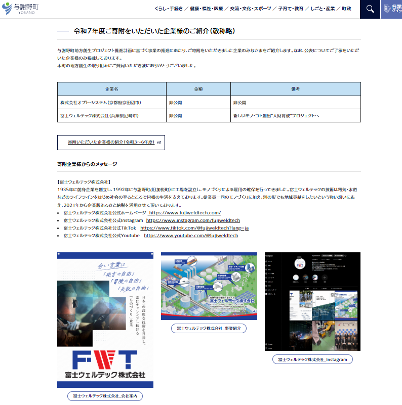内閣府認定、地方創生企業版ふるさと納税(京都府与謝野町)をさせていただきました。