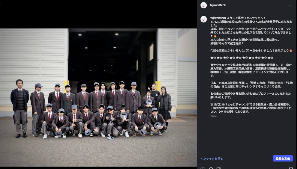 峰山高等学校機械創造科の生徒さんが企業見学に来られました。