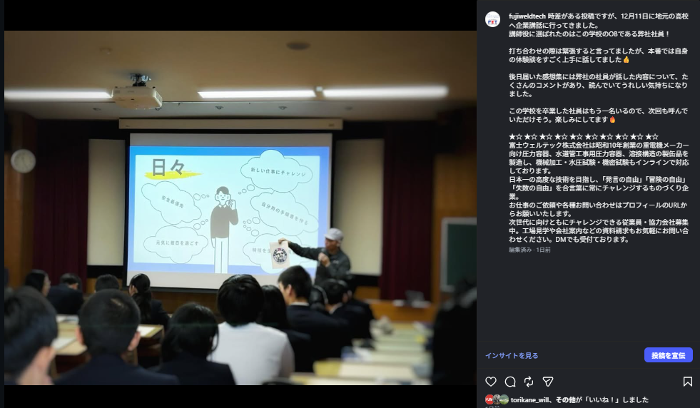 京都府立宮津天橋高校加悦谷学舎にて1年生を対象とした企業講話が開催され弊社も参加して来ました。