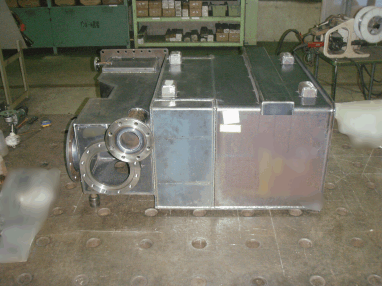 【電鉄車両設備】 電鉄車両床下搭載の変圧器。 軽量化のため薄板鋼板で構成されている。